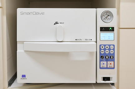 それぞれの器具に適した滅菌器を使い分けることによって、器具についたウイルスや細菌を死滅させることができます。お口に入る器具はすべてこの滅菌器で滅菌した清潔なものを使い、患者さまごと・使用ごとに取り換え、院内感染防止に努めています。