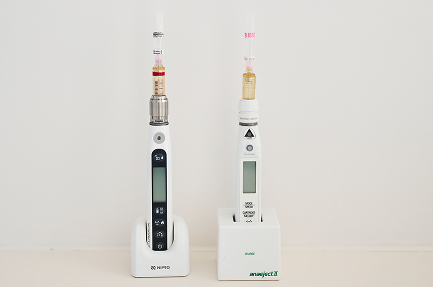 人の手で行う麻酔注射は圧力にムラが出やすく、痛みを感じる原因となります。 電動麻酔器を用いることで、コンピューター制御で麻酔液を一定の圧力でゆっくりと注入でき、痛みを軽減することができます。また、麻酔の量も通常の半分ほどですむため、身体への負担がより少なくなります。