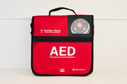 万が一の時に備え、AEDを設置しております。AEDは、不整脈による心停止の際に、心臓に電気ショックを与えて正常なリズムに戻すための医療機器です。一般の人でも簡単に扱えるように設計されています。